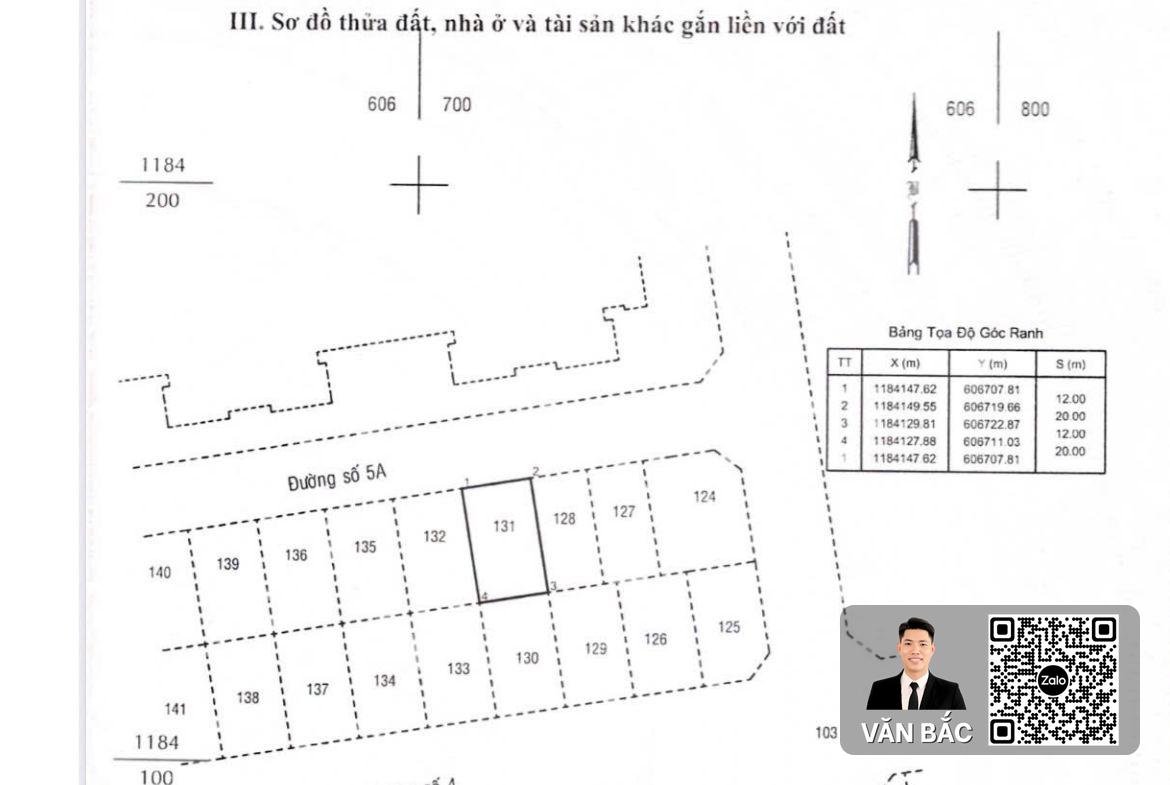 Tọa lạc trong không gian sống yên tĩnh, xanh mát và dân trí cao bậc nhất tại Khu định cư CIQ4 (Phường Tân Phú, Quận 7). Nền đất mã số G1-10 (Thửa 131) nằm trên mặt tiền đường số 5, sở hữu diện tích lý tưởng 240m² (12m x 20m). Với chiều ngang 12m bề thế, đây là quỹ đất hoàn hảo để kiến tạo một dinh thự biệt lập cao cấp hoặc tòa nhà văn phòng hiện đại ngay trung tâm hành chính Quận 7. Giá bán: 28 tỷ đồng (có thương lượng trực tiếp).
