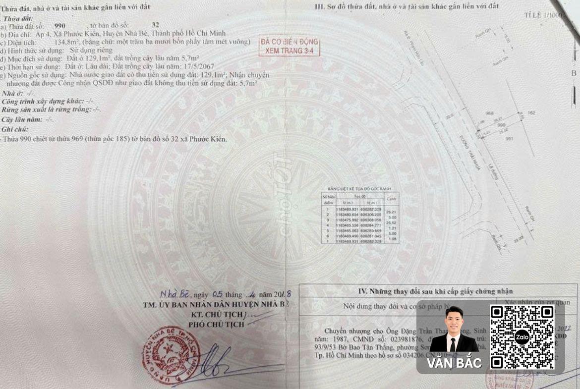 Cơ hội an cư tại khu dân cư "vàng" Bộ Công An Phước Kiển – Lô đất Thửa 990 diện tích 130m², chiều dài 26m tạo không gian sân vườn thoáng đạt, pháp lý sổ hồng riêng, công chứng ngay