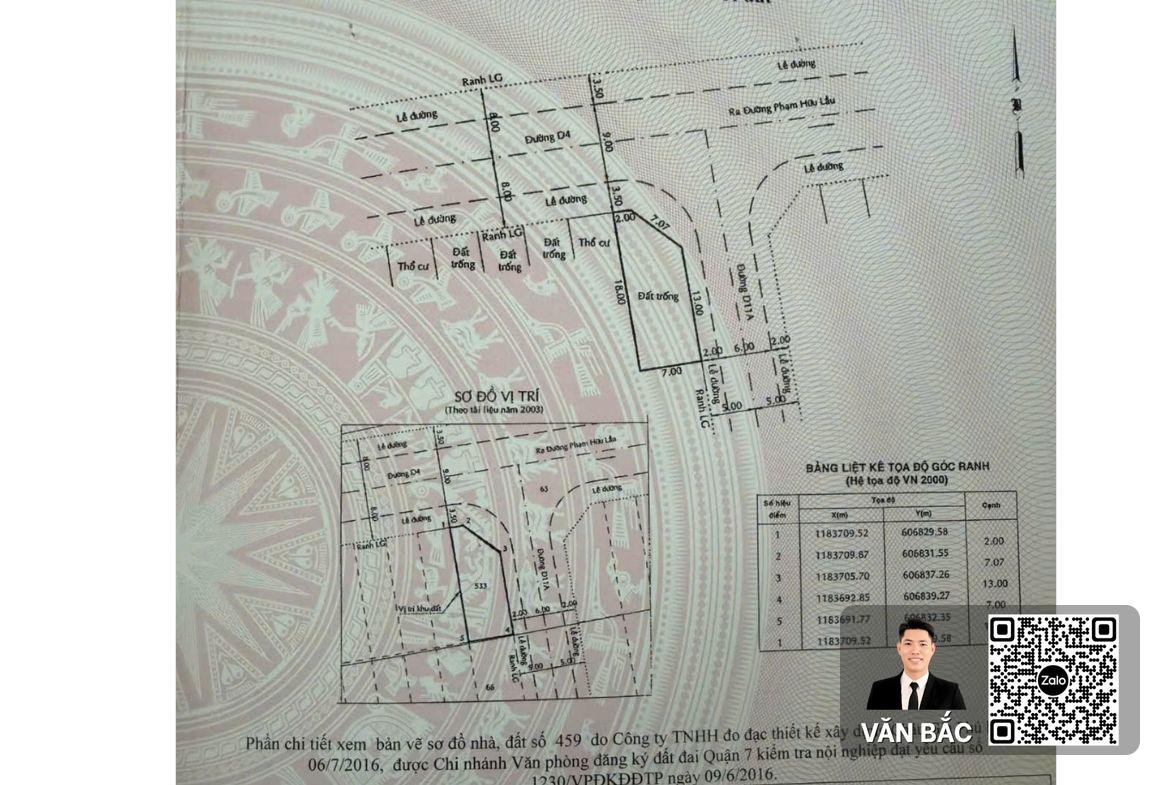 Sở hữu vị trí đắc địa tại mã lô A26 thuộc dự án Tái định cư Quận 7, lô đất góc 2 mặt tiền này là một trong những sản phẩm hiếm hoi còn sót lại có diện tích lý tưởng và tầm nhìn thoáng đãng. Với diện tích 113,5m² (7m x 18m), lô đất sở hữu hai hướng chính là Bắc và Đông, mang lại sự mát mẻ và vượng khí cho gia chủ. Bất động sản có pháp lý minh bạch, thời hạn sử dụng lâu dài, sẵn sàng cho việc xây dựng ngay. Giá bán 13,9 tỷ đồng (có thương lượng).