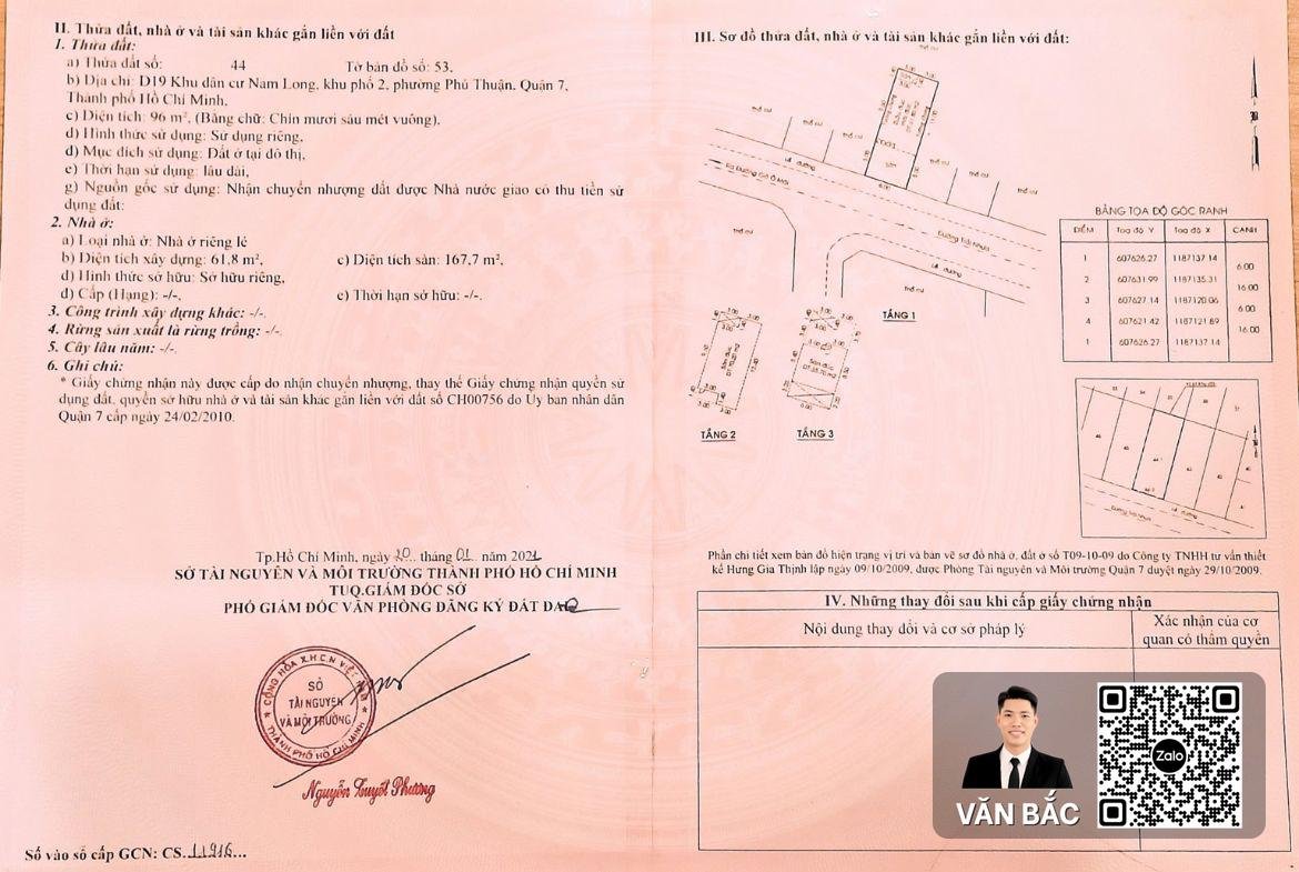 Tọa lạc tại khu đô thị kiểu mẫu Nam Long Phú Thuận (KDC Trần Trọng Cung) – một trong những khu dân cư xanh và đáng sống nhất Quận 7. Căn nhà phố mã D19 sở hữu vị trí đắt giá với tầm nhìn view thẳng công viên nội khu. Với chiều ngang 6m cực kỳ bề thế, diện tích đất 96m² và tổng diện tích sàn 167,7m², ngôi nhà mang đến không gian sinh hoạt rộng rãi và thoáng đạt. Kết cấu 1 Trệt + 2 Lầu + Áp mái gồm 5 phòng ngủ, 4 WC. Hướng Tây Nam, Sổ hồng riêng. Giá bán: 17 tỷ đồng (có thương lượng).