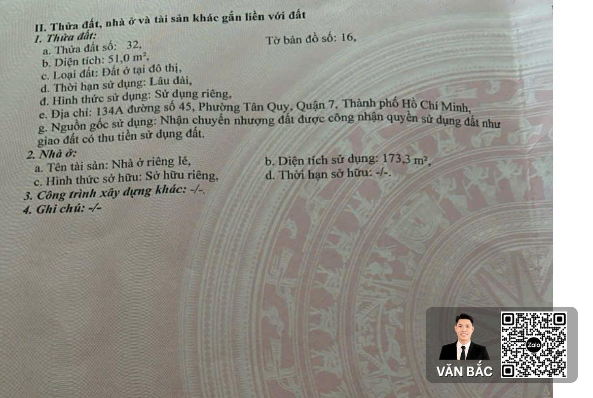 Vị trí BĐS: Số 134A Đường số 45, Phường Tân Quy, Quận 7, TP.HCM