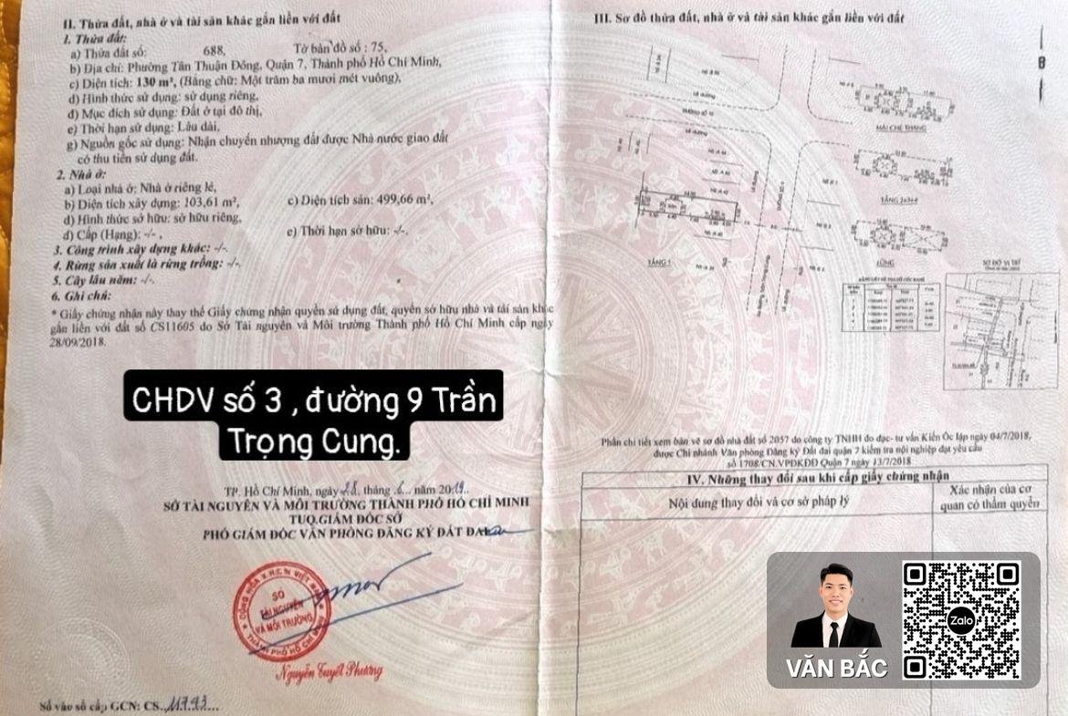 Sở hữu bất động sản dòng tiền đắc địa tại trung tâm KDC Nam Long TTC (Khu Trần Trọng Cung), Phường Tân Thuận Đông, Quận 7. Tòa nhà CHDV tại địa chỉ số 3 Đường số 9 tọa lạc ngay khu vực sầm uất gần các cụm chung cư cao tầng, đảm bảo nguồn khách thuê luôn lấp đầy. Với diện tích 5m x 26m (130m²) và kết cấu 1 Trệt + 4 Lầu tích hợp thang máy, tòa nhà hiện có 16 phòng cho thuê full nội thất, mang lại thu nhập đều đặn 90 triệu/tháng. Hướng Đông, pháp lý sổ hồng riêng. Giá bán 31 tỷ đồng (có thương lượng).