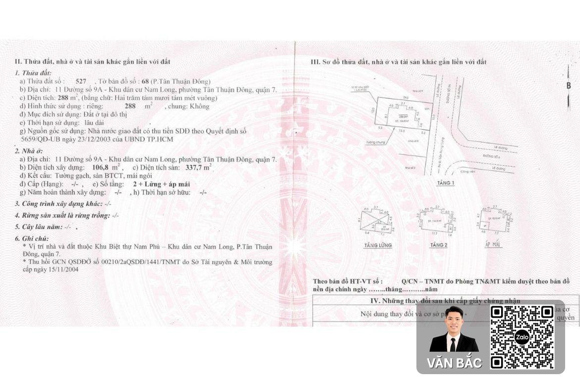 Tọa lạc trong khu biệt thự khép kín Nam Phú Villas – một trong những cộng đồng cư dân sang trọng và yên bình nhất Quận 7. Căn biệt thự tại số 11 Đường số 9A sở hữu thiết kế dạng đơn lập độc bản với 4 mặt thoáng, tối ưu hóa sự riêng tư và ánh sáng tự nhiên. Trên khuôn đất 288m², ngôi nhà được xây dựng kiên cố Trệt + Lửng + 2 Lầu, hoàn thiện cao cấp, sẵn sàng đón gia chủ mới vào an cư. Giá bán chốt: 38,5 tỷ đồng.