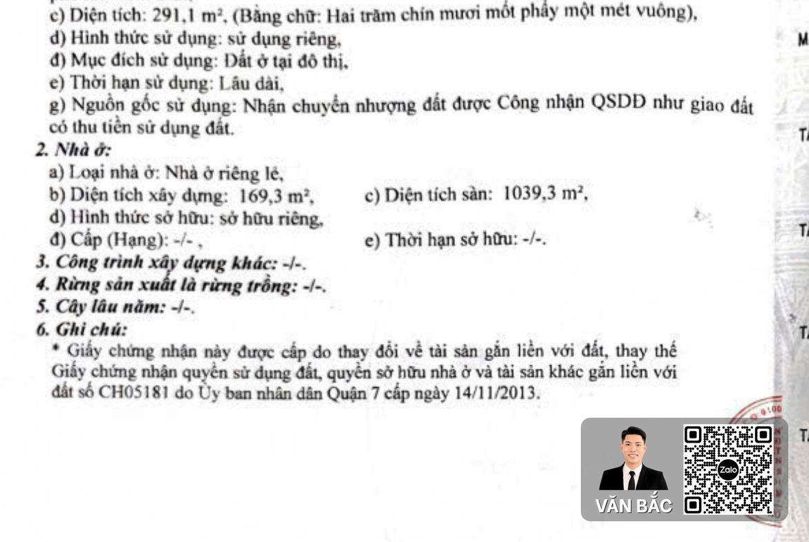 - Diện tích đất8m x 36.5m - Công nhận đủ 291 m2 trên sổ hồng.