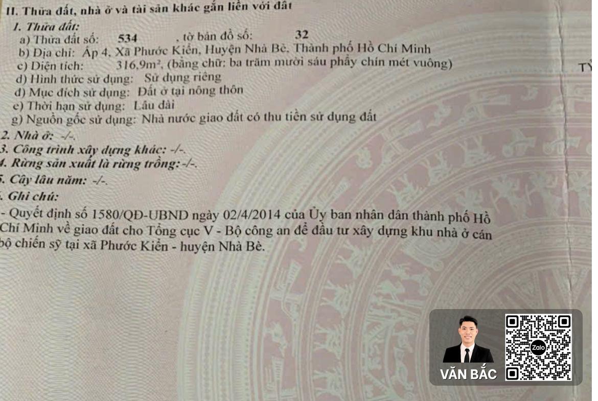 Tọa lạc tại vị trí "vàng" trong KDC Bộ Công An, xã Phước Kiển, Nhà Bè – khu vực nổi tiếng với sự an ninh, yên tĩnh và cộng đồng cư dân đẳng cấp. Lô đất H10 sở hữu diện tích ấn tượng 311.5m² với chiều ngang rộng 12m, cực kỳ phù hợp để kiến tạo một dinh thự sân vườn hoặc biệt thự đơn lập sang trọng. Với lợi thế hướng Đông Nam đón gió mát lành và mức giá đang được chủ nhà ưu đãi, đây là cơ hội tích sản không thể bỏ lỡ. Giá bán: 38.8 Tỷ đồng (Chủ nhà tặng thêm lộc 125 triệu cho khách thiện chí).
