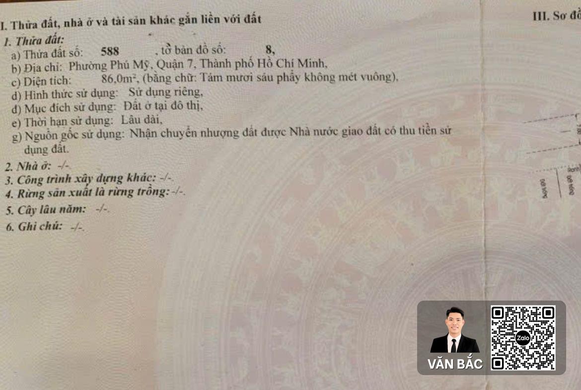 ĐẤT NỀN PHÚ MỸ CHỢ LỚN Q7 – LÔ D30 ĐƯỜNG SỐ 5 – DT 4x25M, SHR – GIÁ: 11 TỶ
