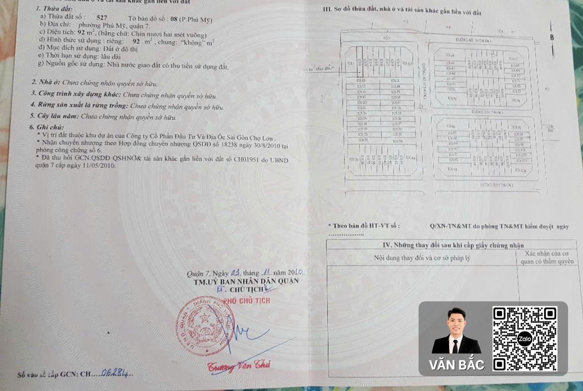 ĐẤT NỀN PHÚ MỸ CHỢ LỚN Q7 – LÔ D30 ĐƯỜNG SỐ 5 – DT 4x25M, SHR – GIÁ: 11 TỶ