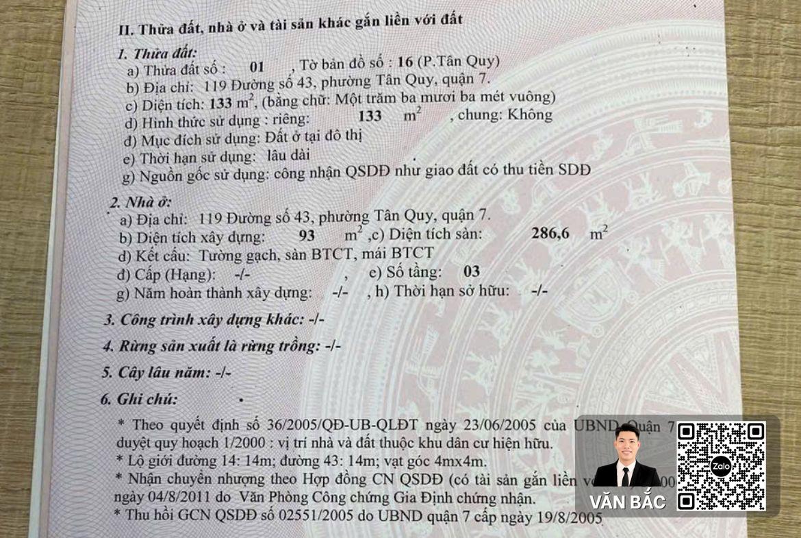 GÓC 2 MẶT TIỀN 119 ĐƯỜNG SỐ 43, TÂN QUY Q7 – DT 8.2x22M – VỊ TRÍ KINH DOANH ĐA NGÀNH – GIÁ 35 TỶ