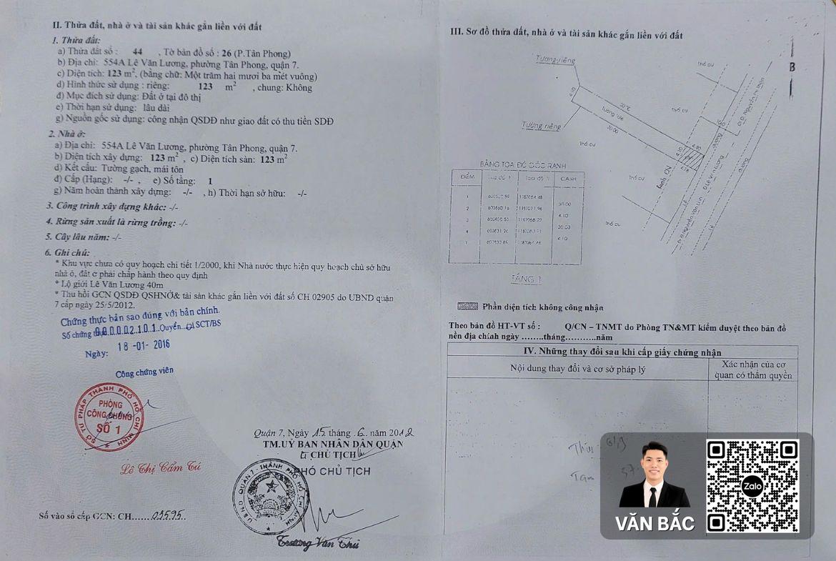 Tọa lạc tại số 554A Lê Văn Lương, Phường Tân Phong, Quận 7 – trục đường thương mại sầm uất bậc nhất kết nối khu Nam Sài Gòn. Căn nhà sở hữu diện tích "hiếm có" 4.1m x 30m, tạo không gian kinh doanh vô cùng rộng thoáng. Hiện trạng nhà Trệt + Lửng đang được khai thác cho thuê mang lại dòng tiền 40 Triệu/Tháng. Với mức giá 21,45 Tỷ đồng và pháp lý sổ hồng riêng, đây là tài sản đầu tư tích sản có giá trị gia tăng cực cao.