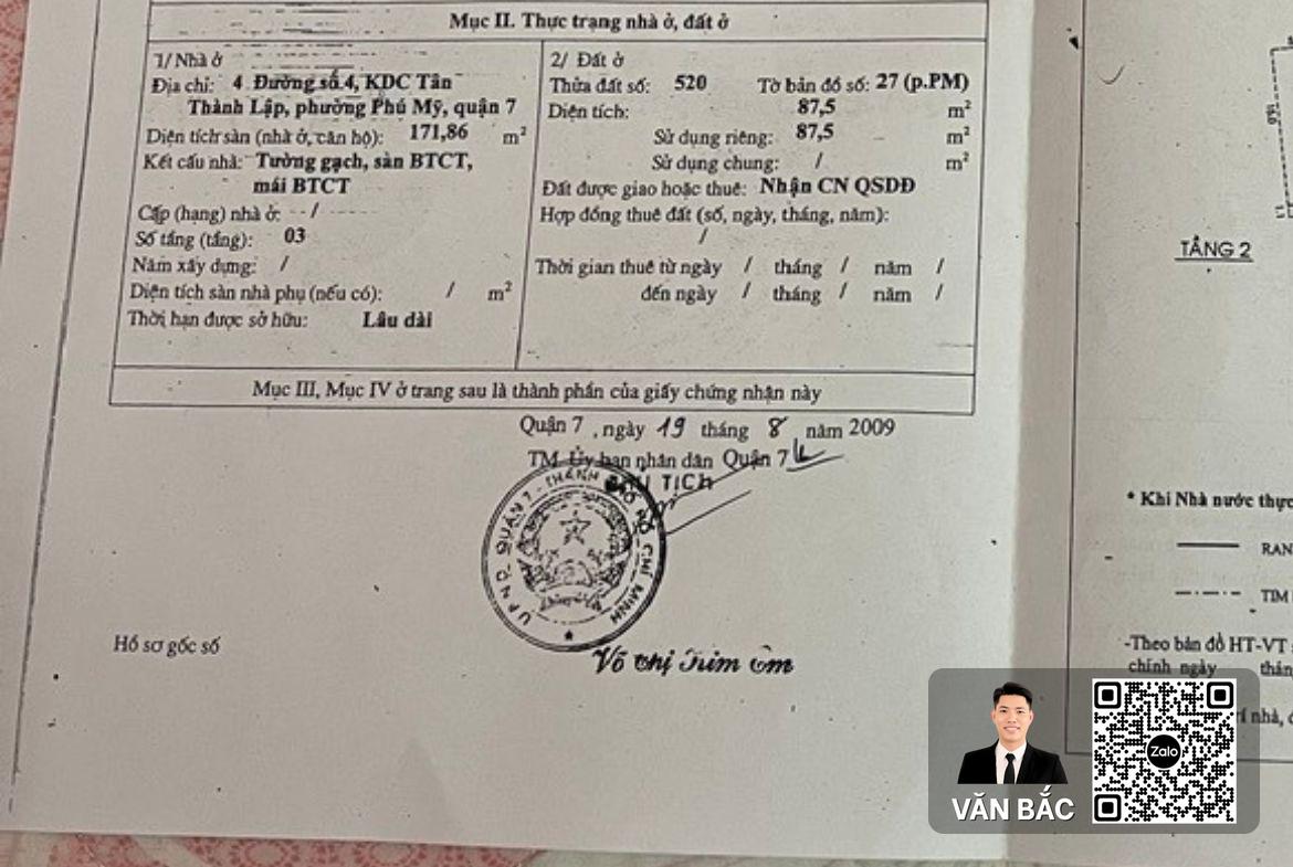 Số 9 – Đường số 1, P. Phú Mỹ, Q7 kdc tân thành lập- Đất nền thổ cư