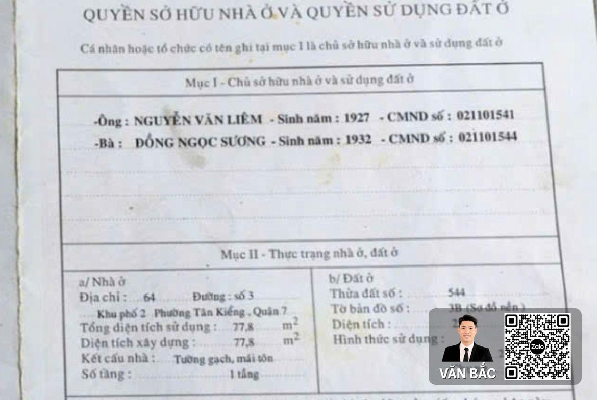 Tọa lạc tại mặt tiền Đường số 3, Phường Tân Kiểng, Quận 7 – trục đường kinh doanh đa ngành, giao thông nhộn nhịp kết nối trực tiếp các tuyến đường huyết mạch. Lô đất số 64 sở hữu diện tích ấn tượng 225.2m² (8m x 28m), hiện trạng là nhà cấp 4 thuận tiện tháo dỡ để giải phóng mặt bằng. Điểm giá trị nhất chính là chỉ tiêu xây dựng cao tầng (Hầm + 7 Tầng), biến nơi đây thành địa điểm hoàn hảo để phát triển các loại hình kinh doanh quy mô lớn. Giá bán: 40 Tỷ đồng (Thương lượng chính chủ).