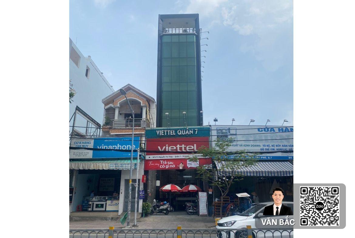 TÒA NHÀ MẶT TIỀN 273 NGUYỄN THỊ THẬP Q7 – HẦM 6 LẦU, THANG MÁY – DT 5x27M. HDT 100TR/THÁNG – GIÁ 50 TỶ